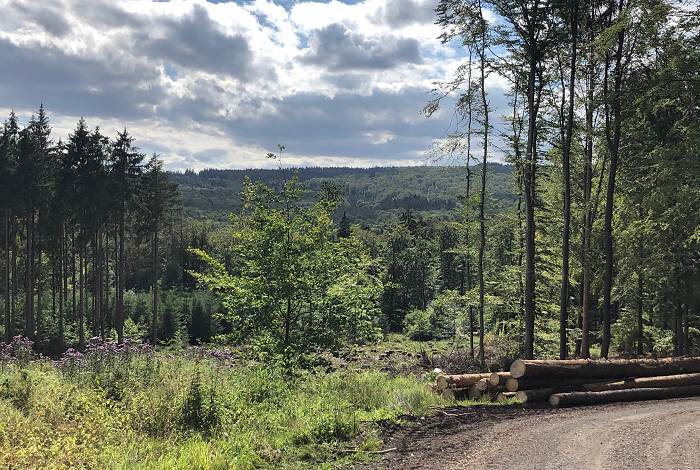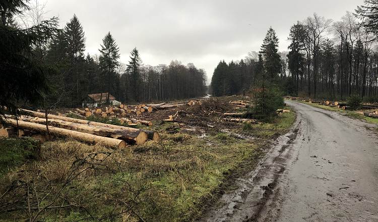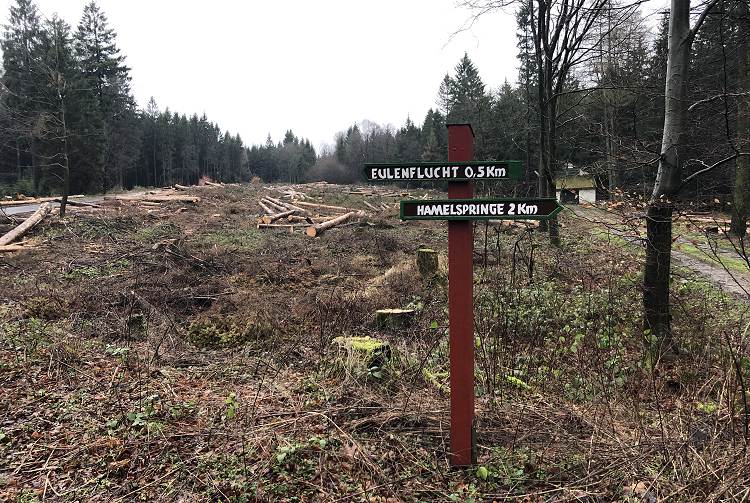 Unterhalb der Eulenflucht hat ein Harvester den gesamten Fichtenbestand ausgeräumt.