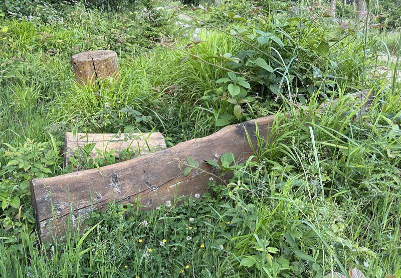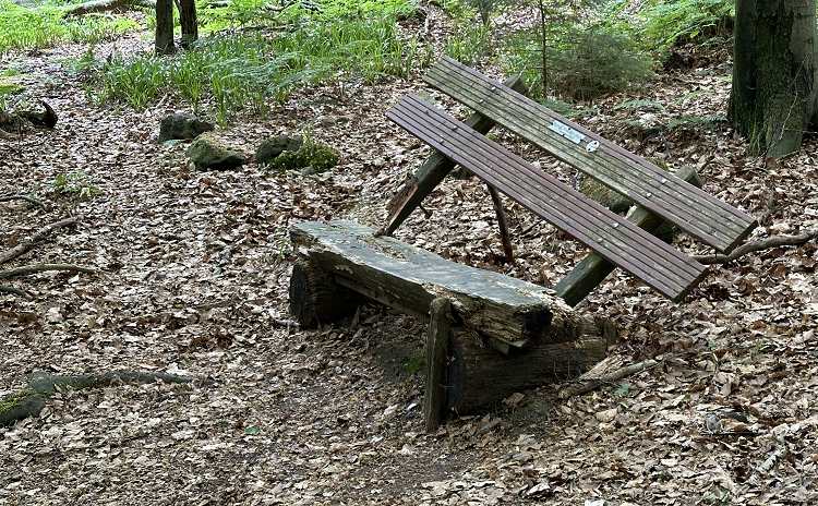 Am Einstieg zum Steinweg (Fliegerdenkmal) verfällt diese Bank.