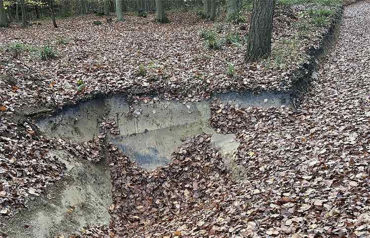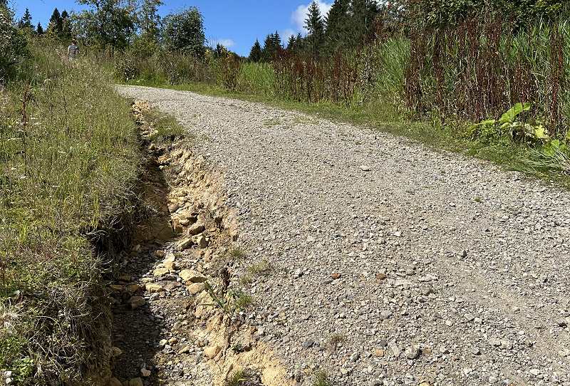Hier ist der Rand des Rehbuschweges ausgebaggert worden. Warum?