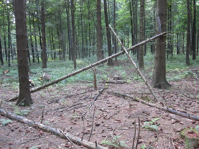 Theoretisch müsste man auf halber Strecke Richtung Kammweg nach rechts ungefähr 100 Meter ins Unterholz gehen.