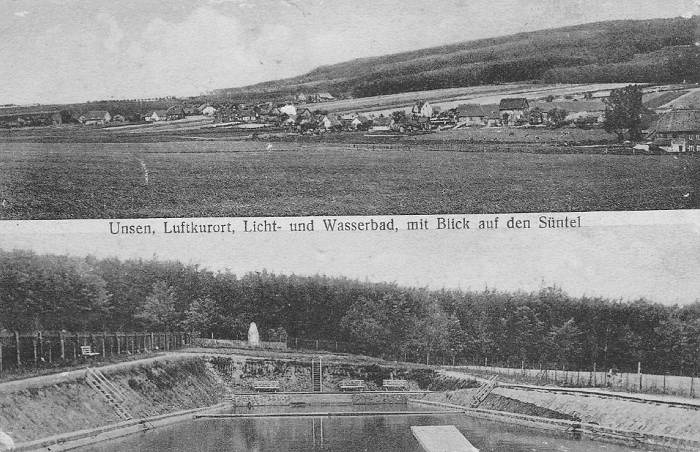 Die Unsener Badeanstalt wurde im Jahr 1930 eingeweiht. Die Kosten für den Bau des Bades betrugen 25000 RM. Träger war die Ortschaft Unsen. Der erste Schwimmmeister war Manfred Mühlenoff aus Oldendorf.