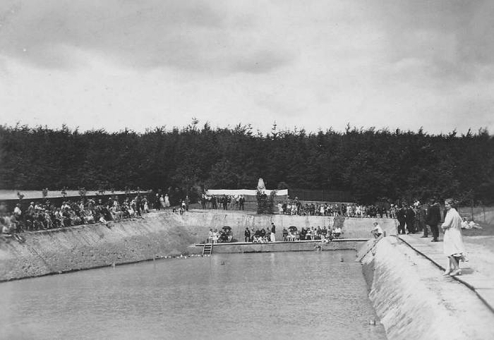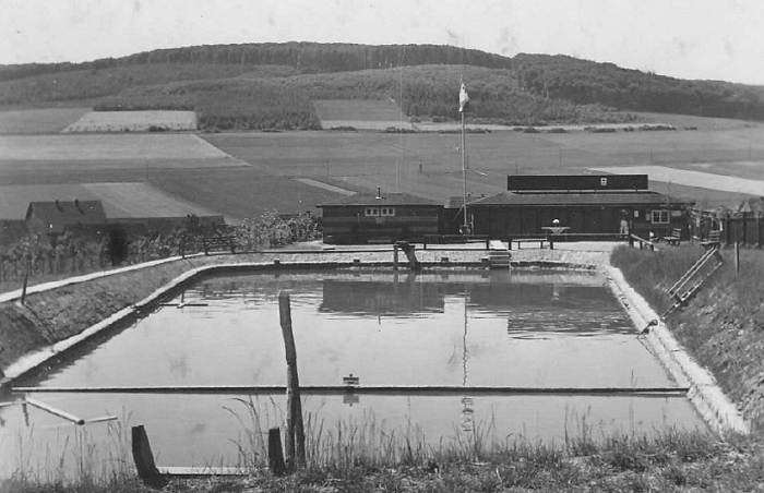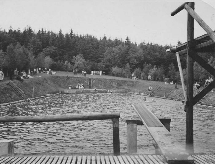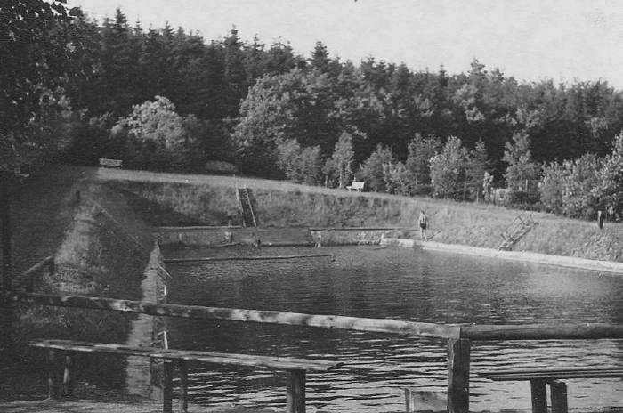 Usprünglich war das Becken ein einfaches Erdloch, das natürlich ständig Wasser verlor. Eine Ausmauerung erfolgte erst 1933. In diesem Jahr wurden auch Bäume gepflanzt. 1935 wurden Sprungtürme mit Höhen von 1 m und 3 m gebaut. Das dafür benötigte Holz wurde von der Forstgenossenschaft gespendet. 1939 wurden weitere Verbesserungen vorgenommen. Vor dem Krieg fanden sehr viele Schwimmwettkämpfe statt. Der Schwimmverein aus Unsen hatte Vereine aus Hannover und anderen Städten zu den Wettkämpfen eingeladen. Die Teilnehmer übernachteten in Zelten. Während des Krieges fand normaler Badebetrieb statt.