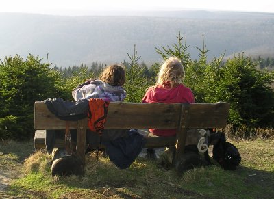 Die Aussicht von da ist bei schönem Wetter beeindruckend. Eine Bank lädt zur Pause ein.