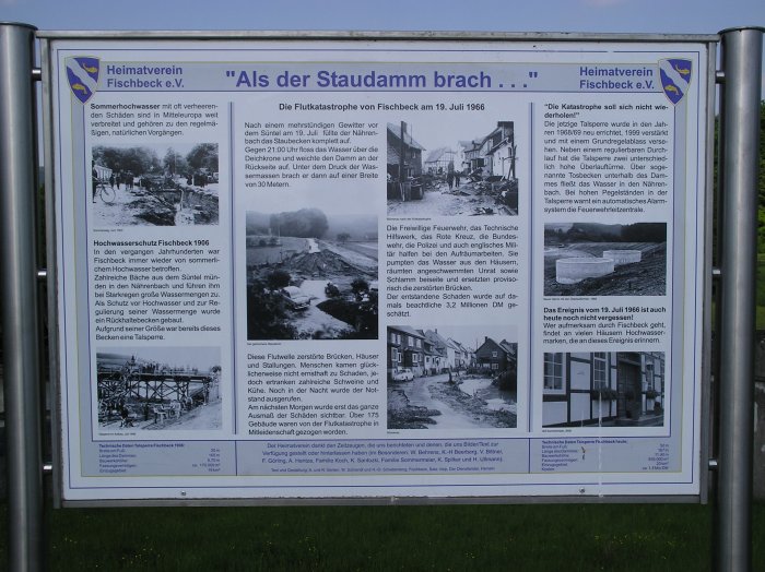 Nach dieser Katastrophe zog die Gemeinde Fischbeck die Konsequenz und beschloss den Bau der Talsperre, die im Jahre 1906 fertiggestellt war. Der Damm hatte eine Länge von 170 Metern, und die Höhe betrug ca. 6 Meter. Das so entstandene Rückhaltebecken konnte eine Wassermenge von 164.000 Kubikmetern fassen. Der Nährenbach floss durch einen Tunnel im Damm, und ein Überlauf am südöstlichen Ende des Dammes sollte zur Entlastung des Staubeckens bei Hochwasser beitragen.
